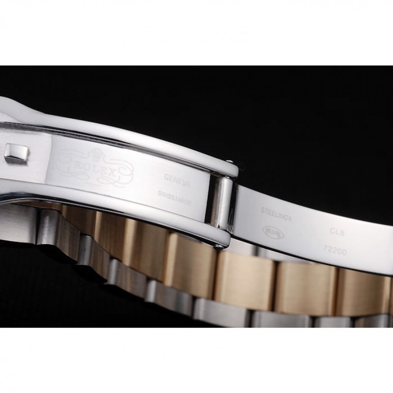 pulsera: cepillado de acero inoxidable y oro amarillo enlace de pulsera con el grabado Rolex en el interior de la hebilla de despliegue y un logotipo de Rolex en la parte superior
