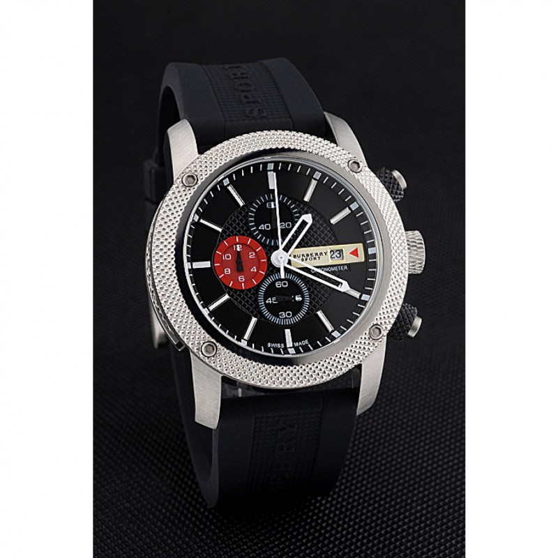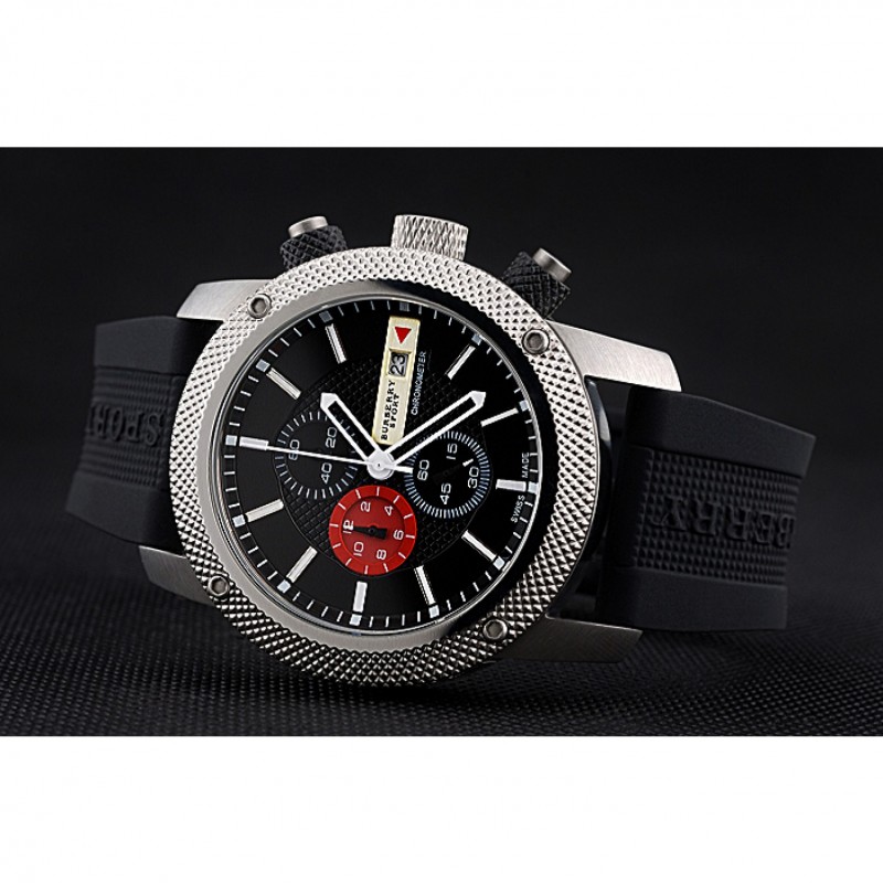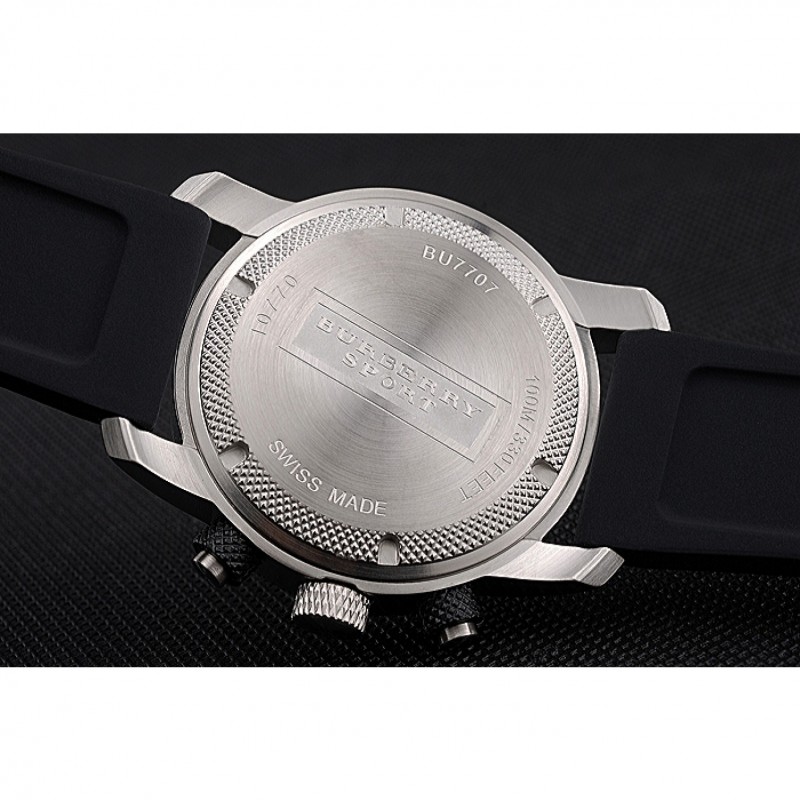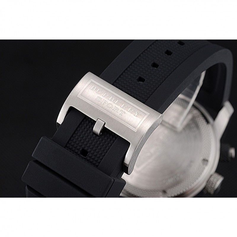 Ronda Burberry Sport Cronógrafo Blanco Caja Negro Dial Negro Pulsera Caucho 622618