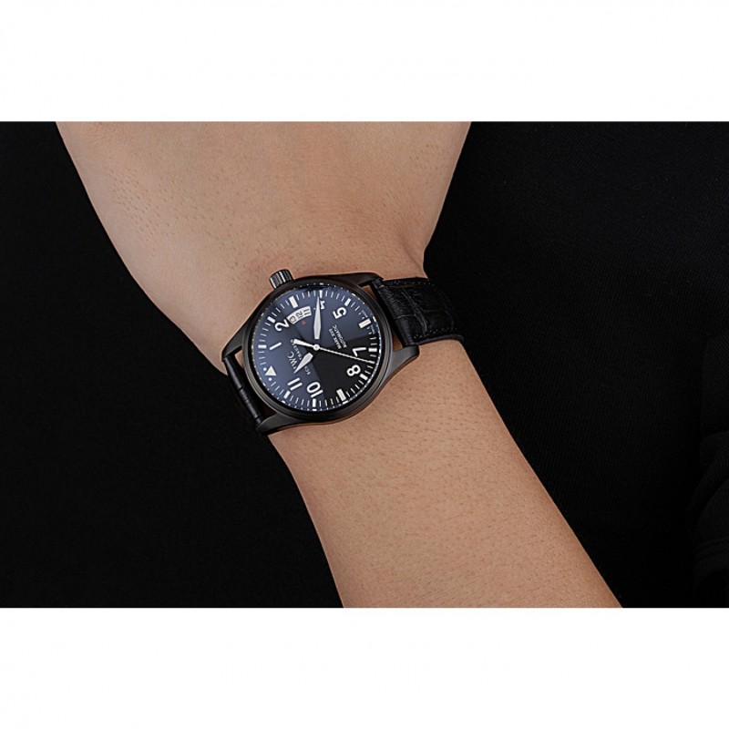pulsera: correa de piel de cocodrilo negro calor CBI en relieve con CBI grabado broche de gancho hebilla ion-plateado