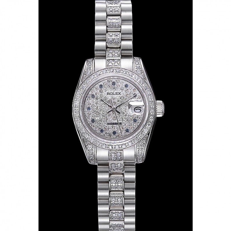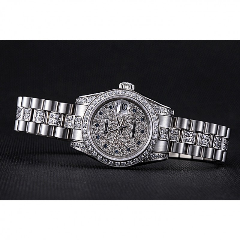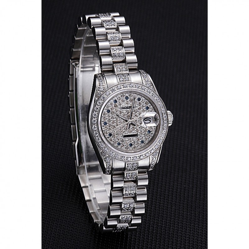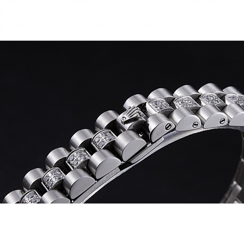 pulsera: incrustaciones de diamantes pulidos de eslabones de acero inoxidable pulsera con calado Rolex hebilla de despliegue logotipo