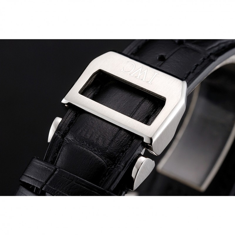 pulsera: correa de piel de cocodrilo negro en relieve calor CBI con CBI grabado acero inoxidable cepillado de gancho hebilla de cierre