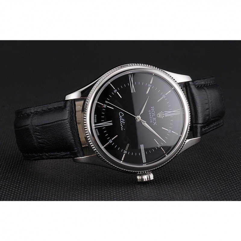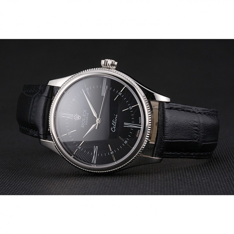 Inicio / Rolex / Cellini / Suiza Rolex Cellini Negro Dial correa de cuero de los números romanos caja de acero inoxidable Negro