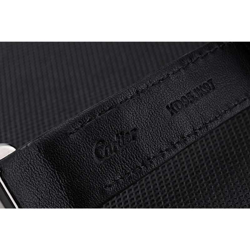 pulsera: correa de piel de cocodrilo negro Cartier y código de producto de calor en relieve con acero inoxidable cepillado de liberación empuje corchete