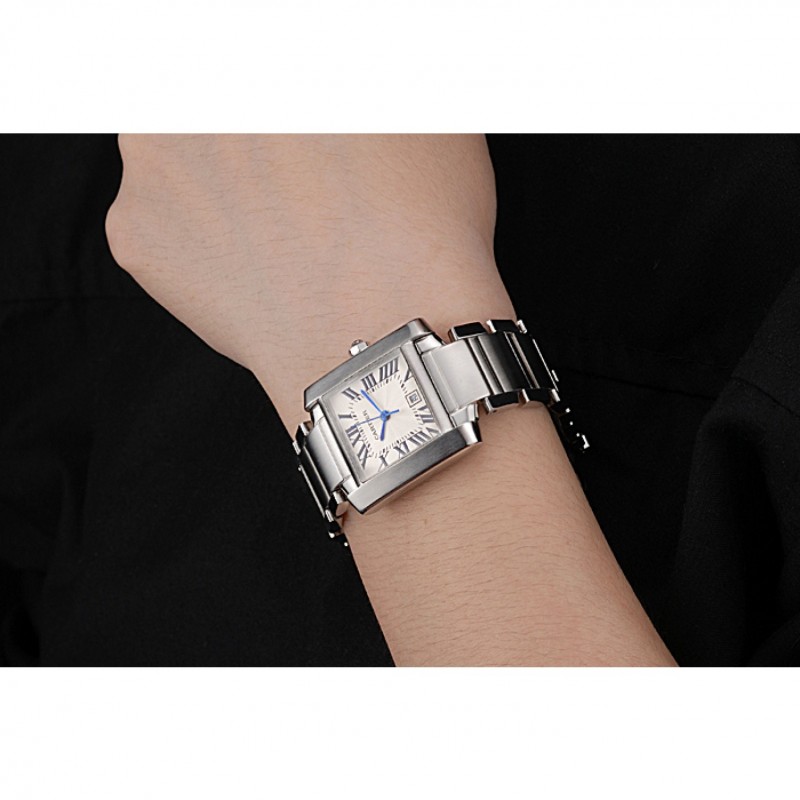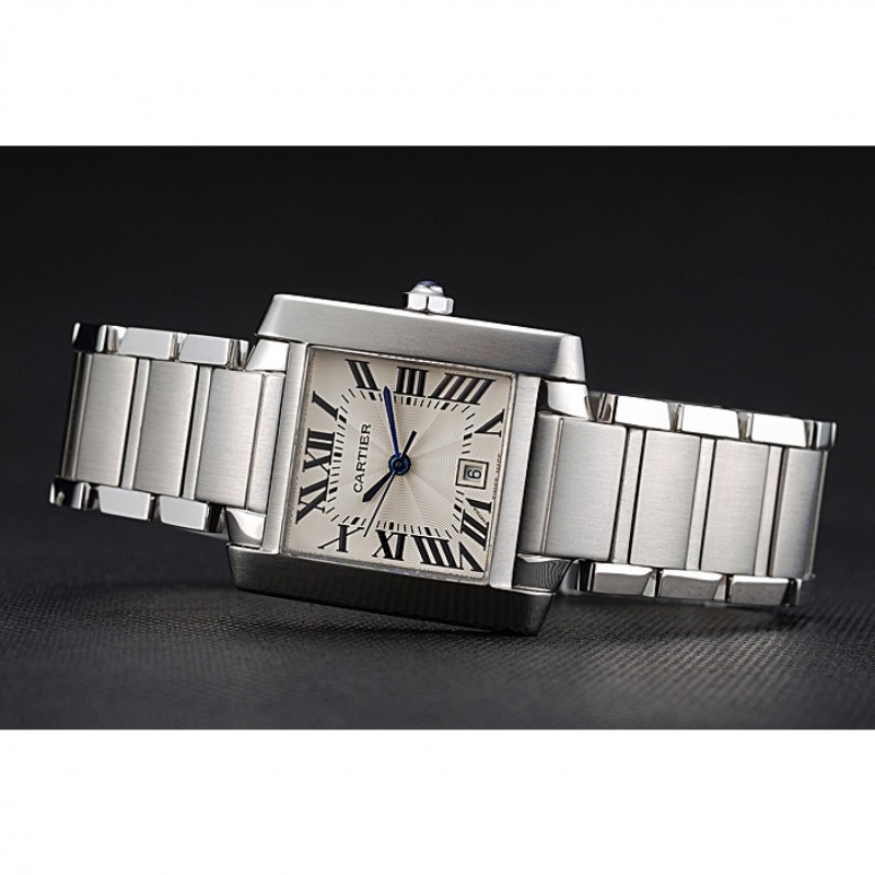 Inicio / Cartier / Suizo Cartier Tank Francaise caja de acero Esfera Blanca, Correa de Acero Inoxidable 622 649 números romanos