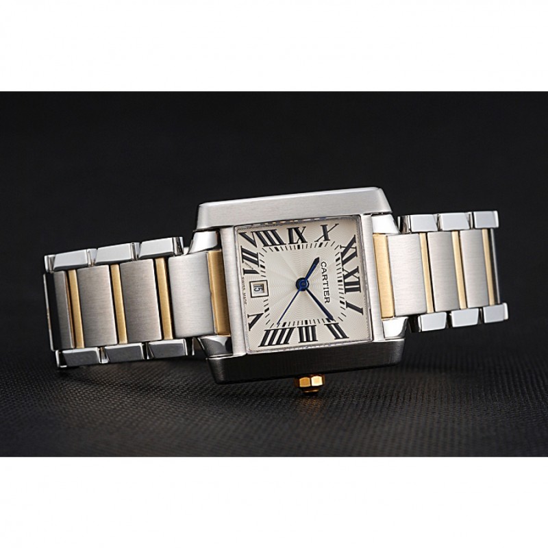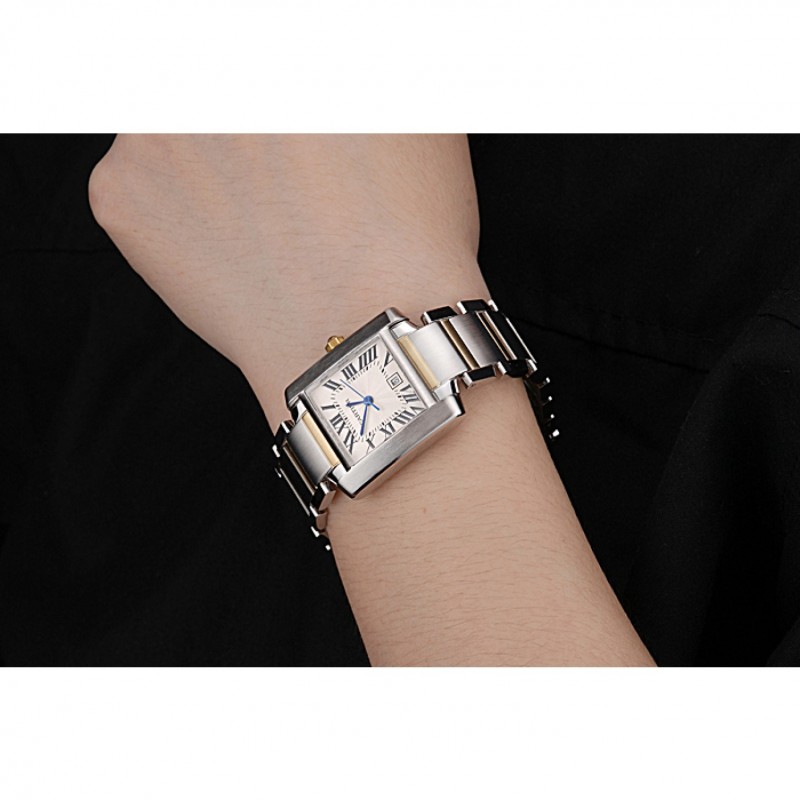 Suizo Cartier Tank Francaise caja de acero Esfera Blanca, los números romanos del brazalete de dos tonos 622648