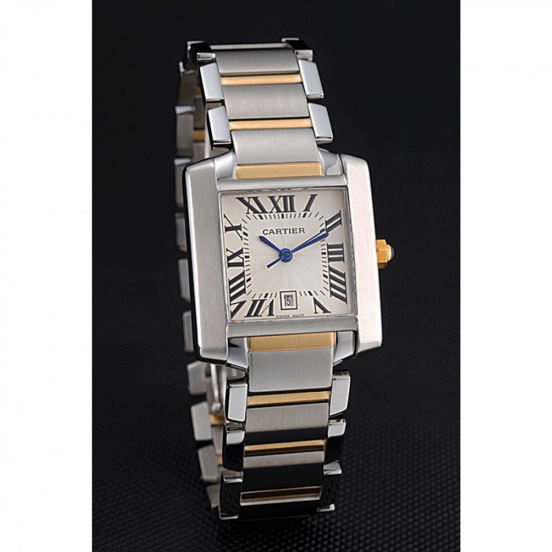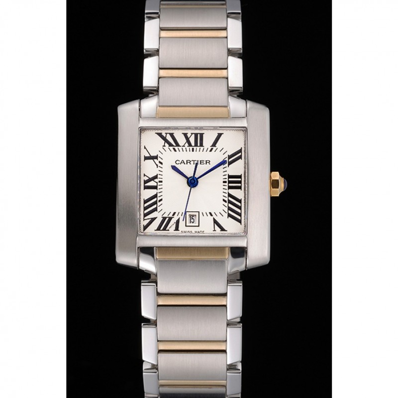 Inicio / Cartier / Suizo Cartier Tank Francaise caja de acero Esfera Blanca, los números romanos del brazalete de dos tonos 622648