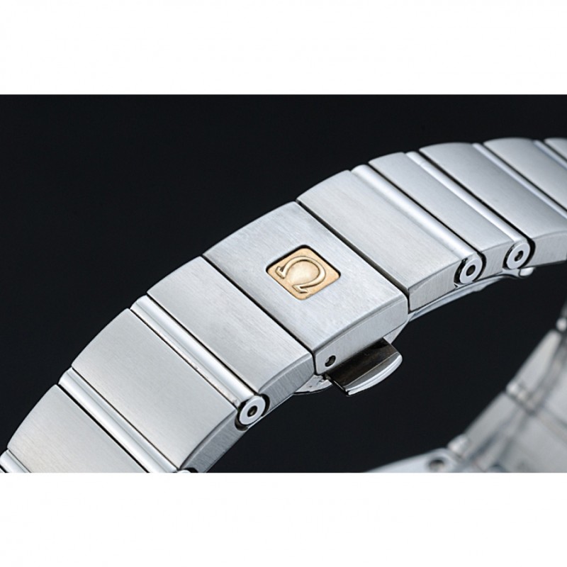 pulsera: cepillado y pulido de acero inoxidable enlace de pulsera con oro rosa plateado cierre oculto Omega liberación logotipo de empuje