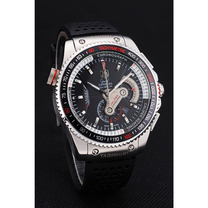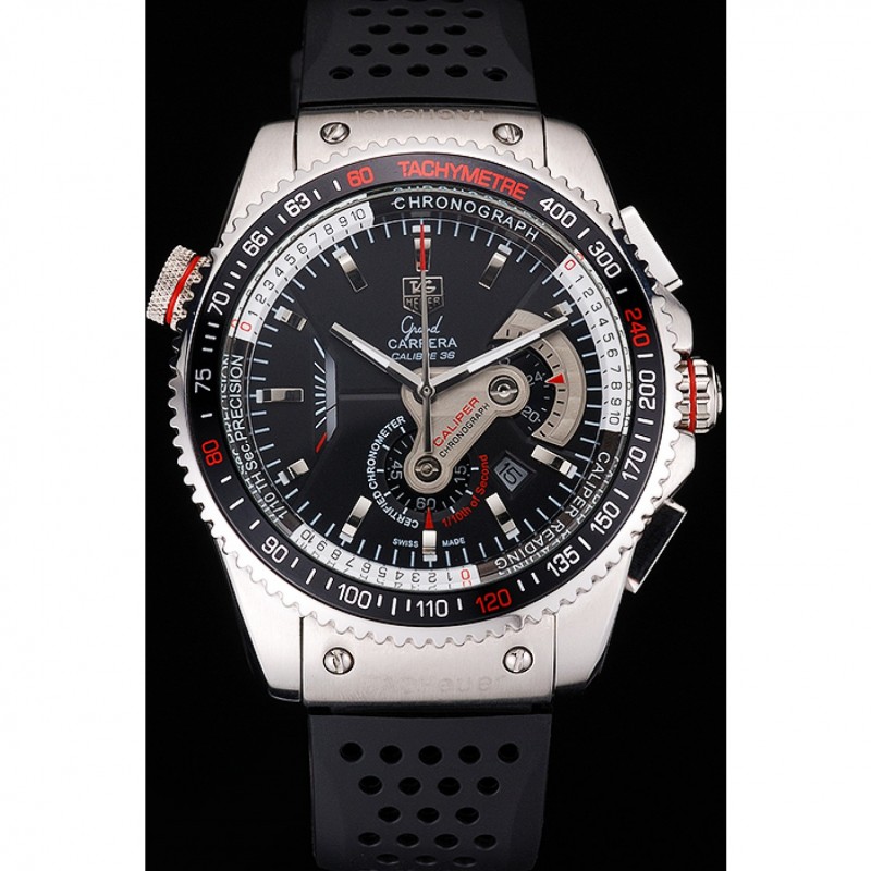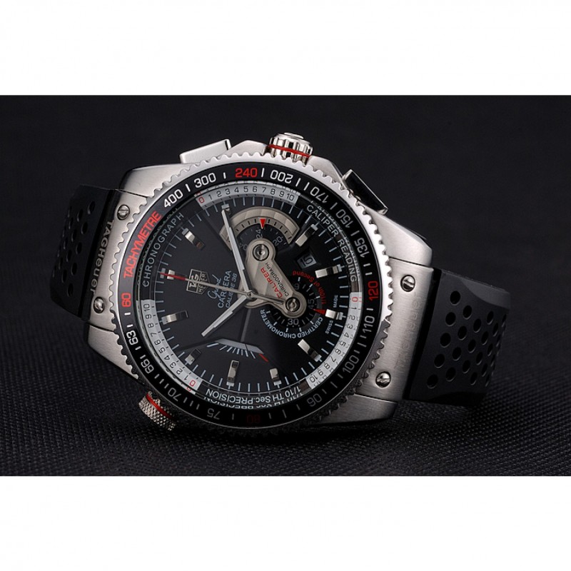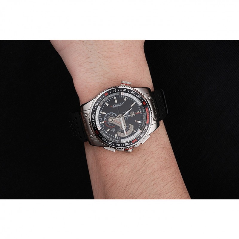 pulsera: correa de caucho negro con textura con relieve de calor Tag sello Heuer y grabado broche de gancho hebilla