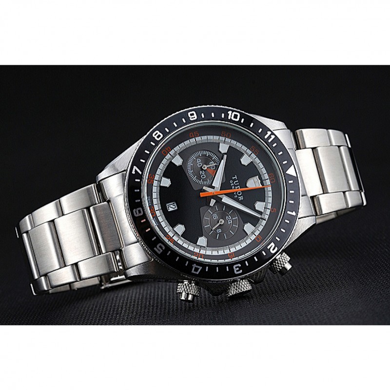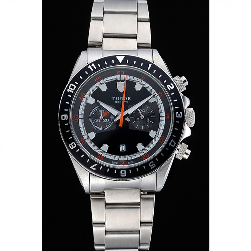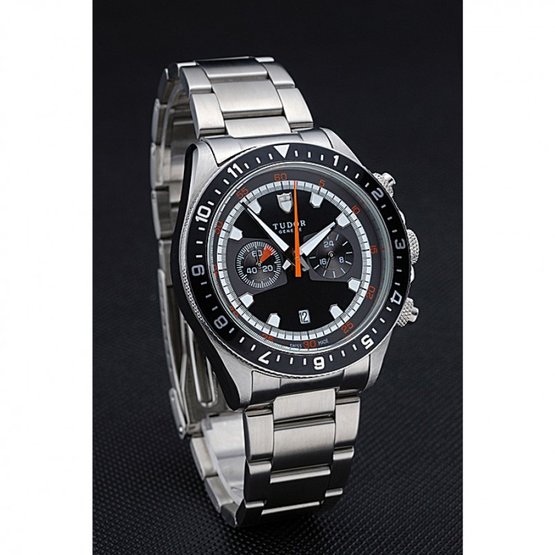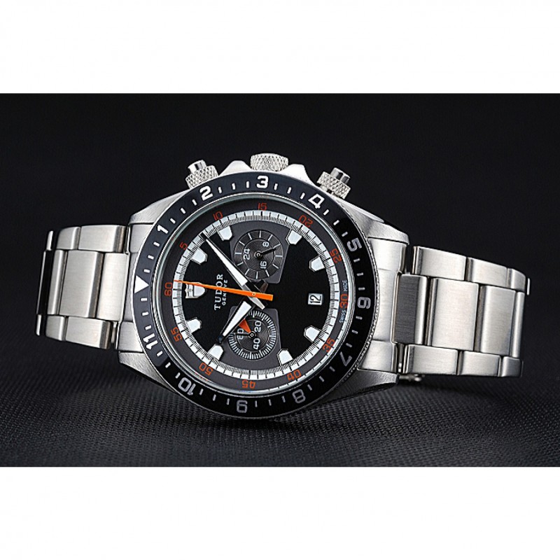 Tudor Patrimonio Cronógrafo Negro Dial pulsera de acero inoxidable 622418