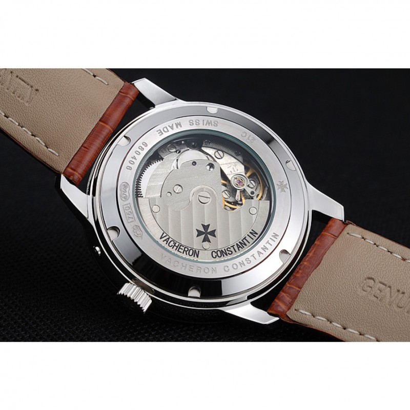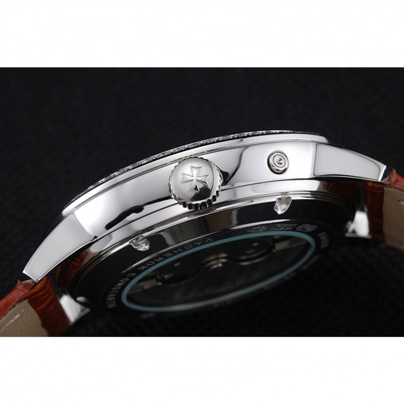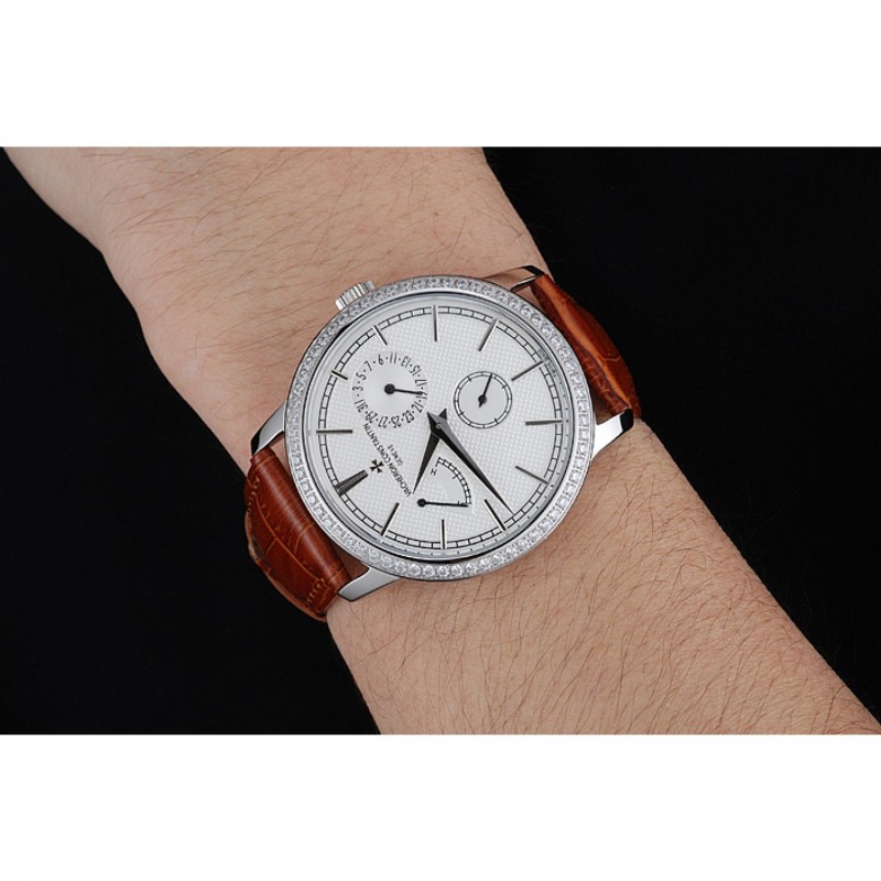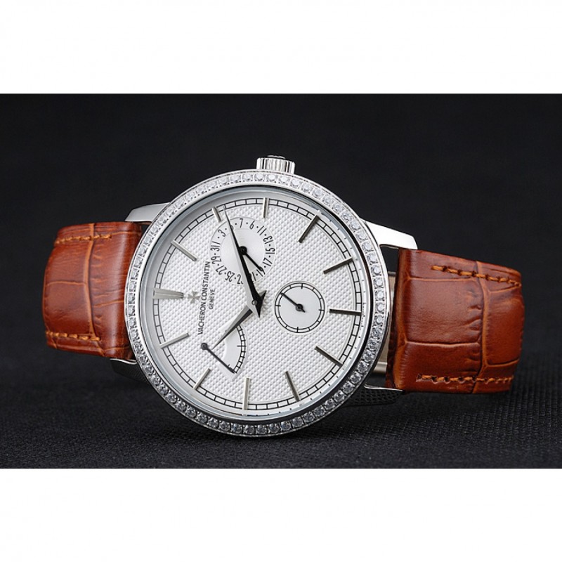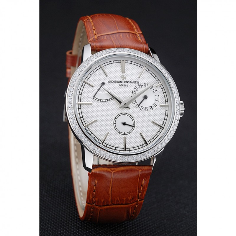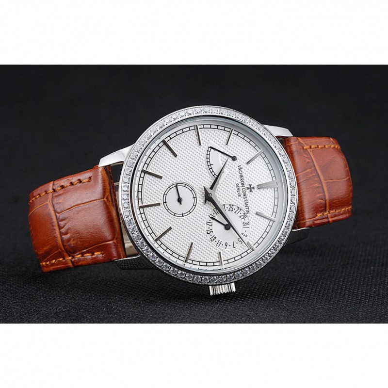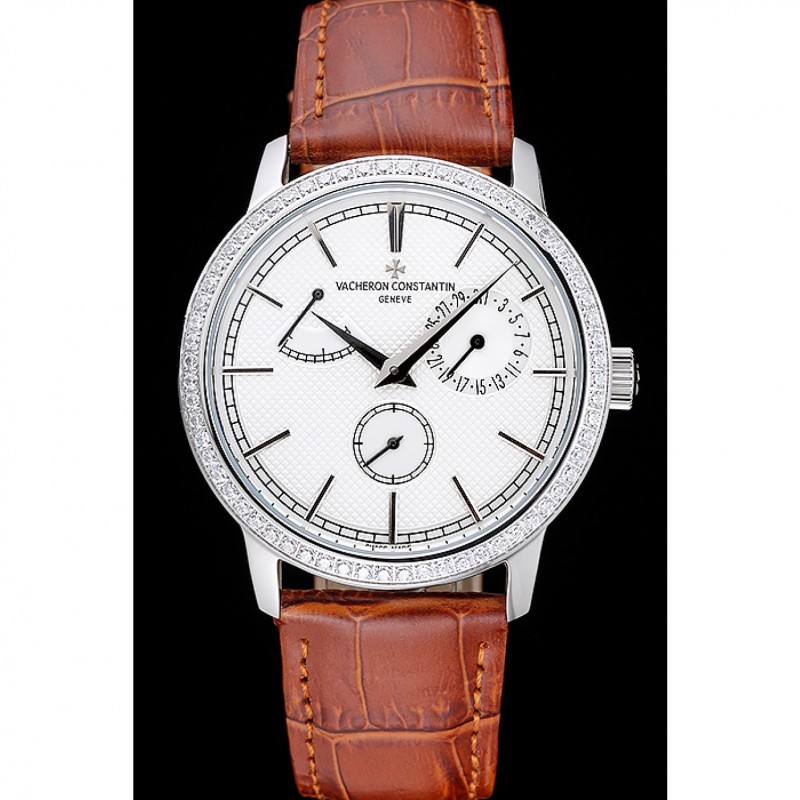 Inicio / Vacheron Constantin / Vacheron Constantin Patrimonio De Reserva blanca reloj de plata de la caja del diamante de Brown Pulsera de cuero 1454266