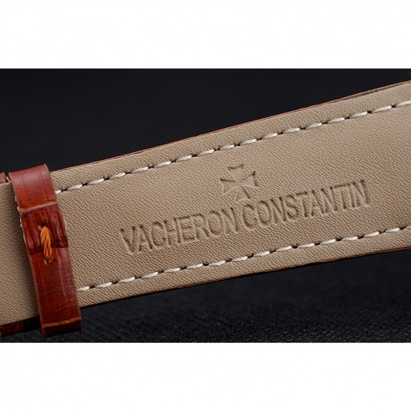 pulsera: Vacheron Constantin correa de piel de cocodrilo marrón en relieve de calor con el logotipo de Vacheron Constantin tallado, pulido de acero inoxidable gancho hebilla de cierre