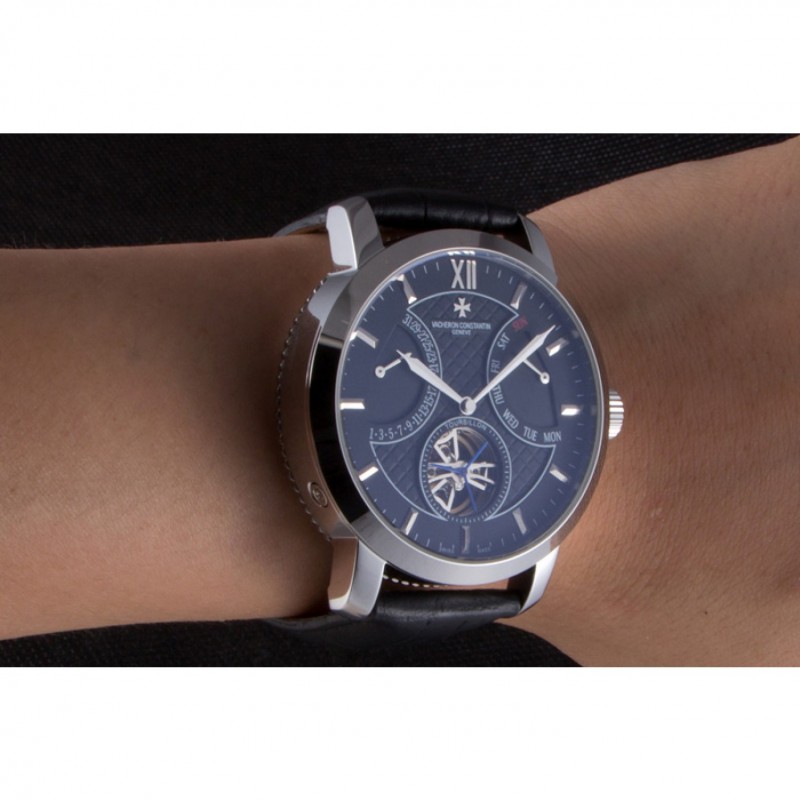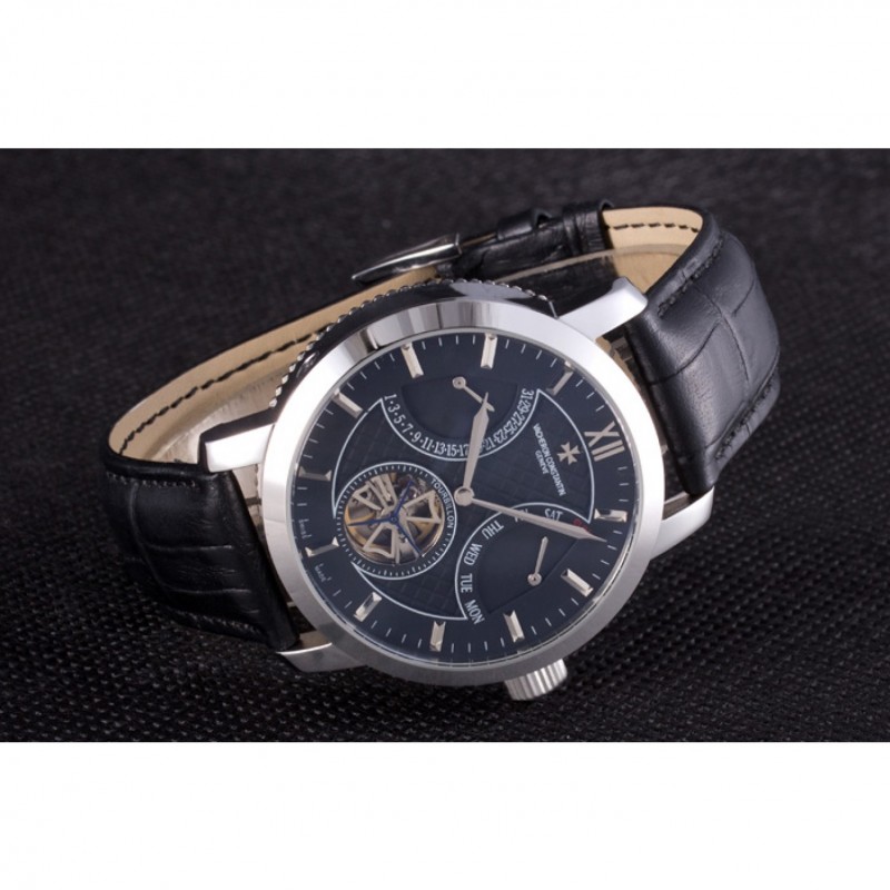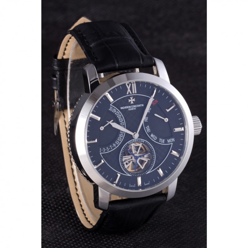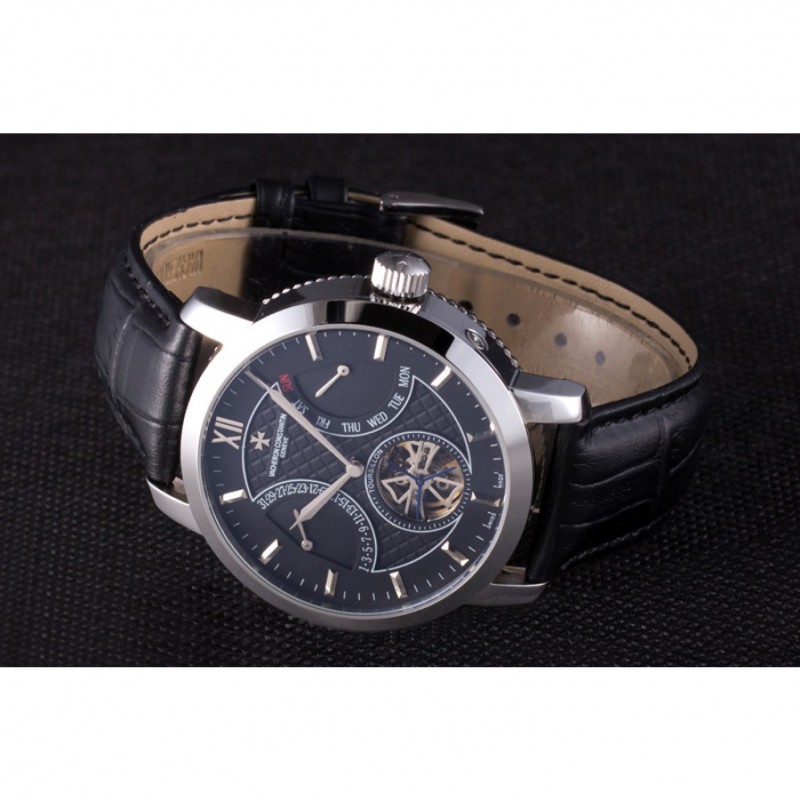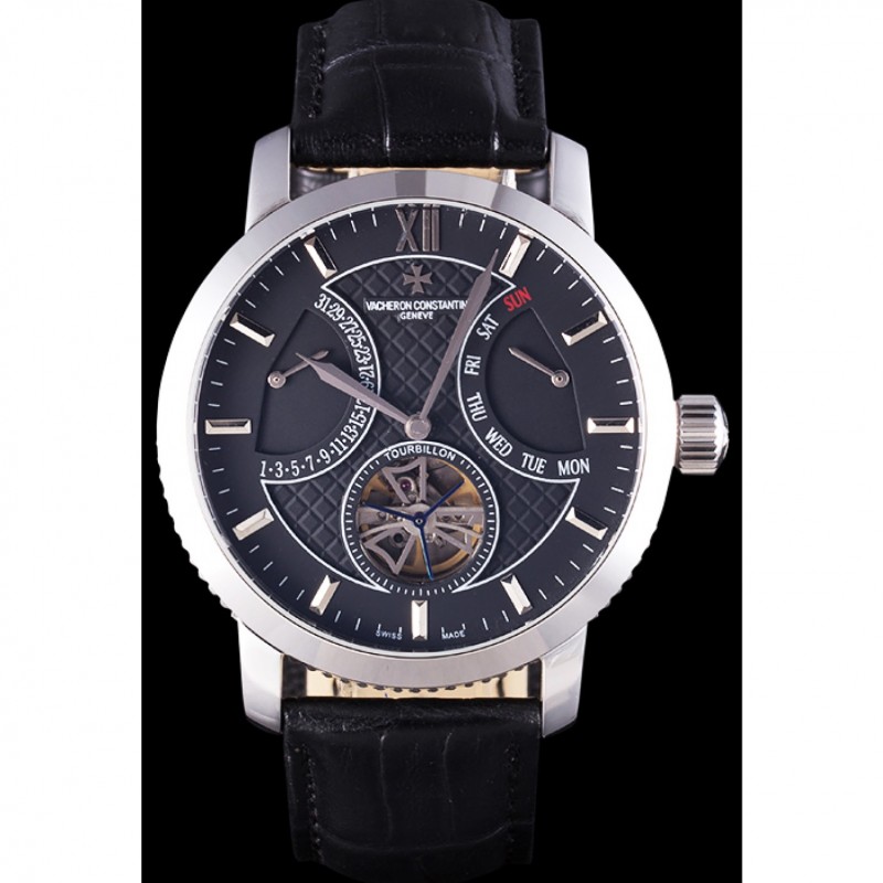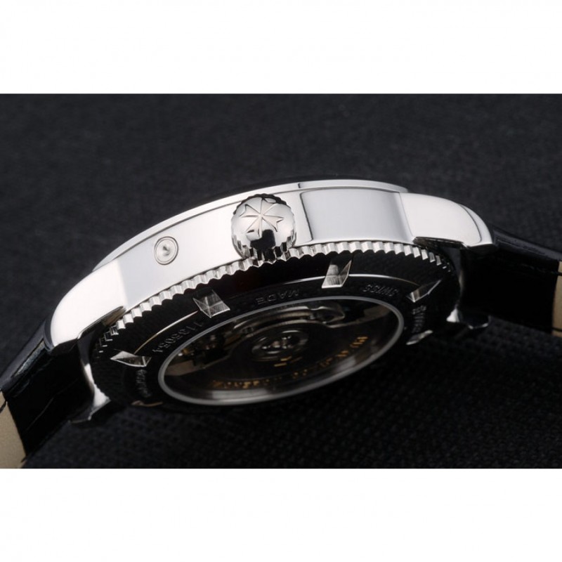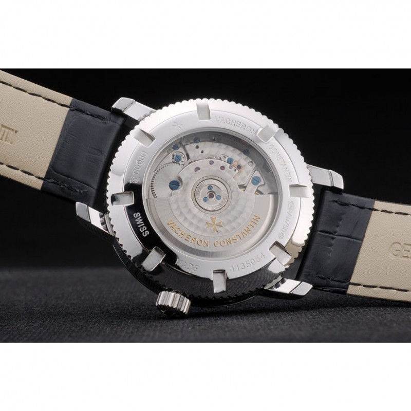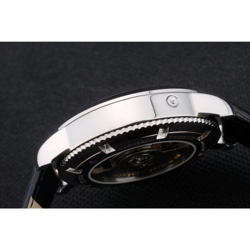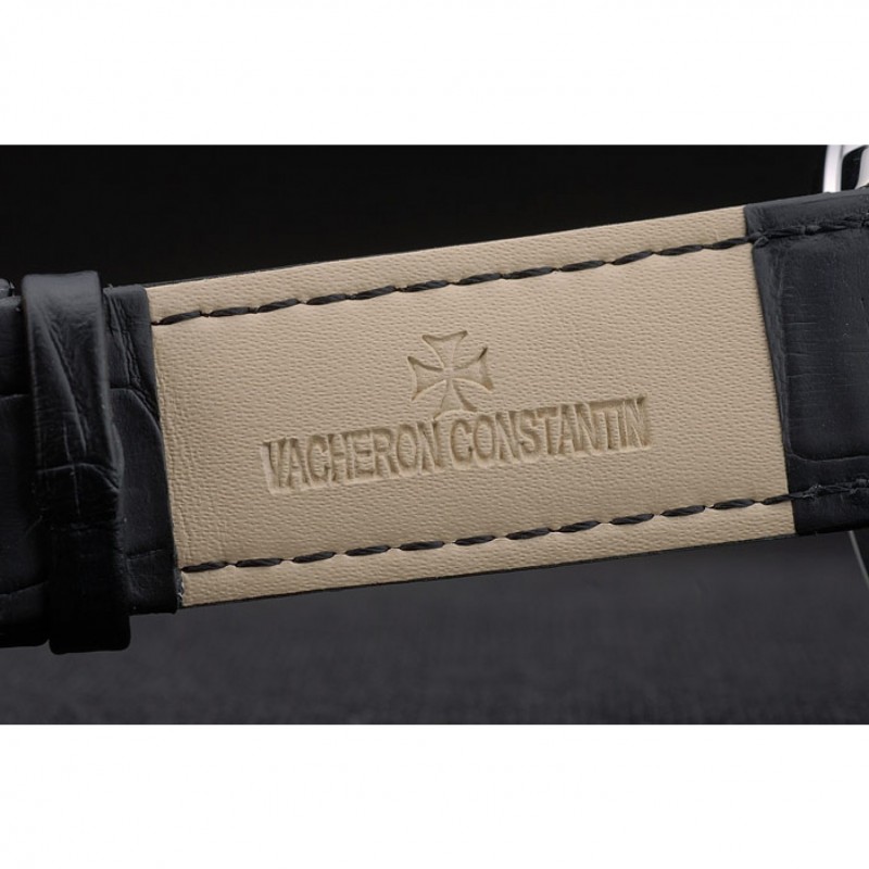 pulsera: Vacheron Constantin y correa de piel de cocodrilo negro calor logotipo en relieve con pulido logo de acero inoxidable de gancho hebilla de cierre